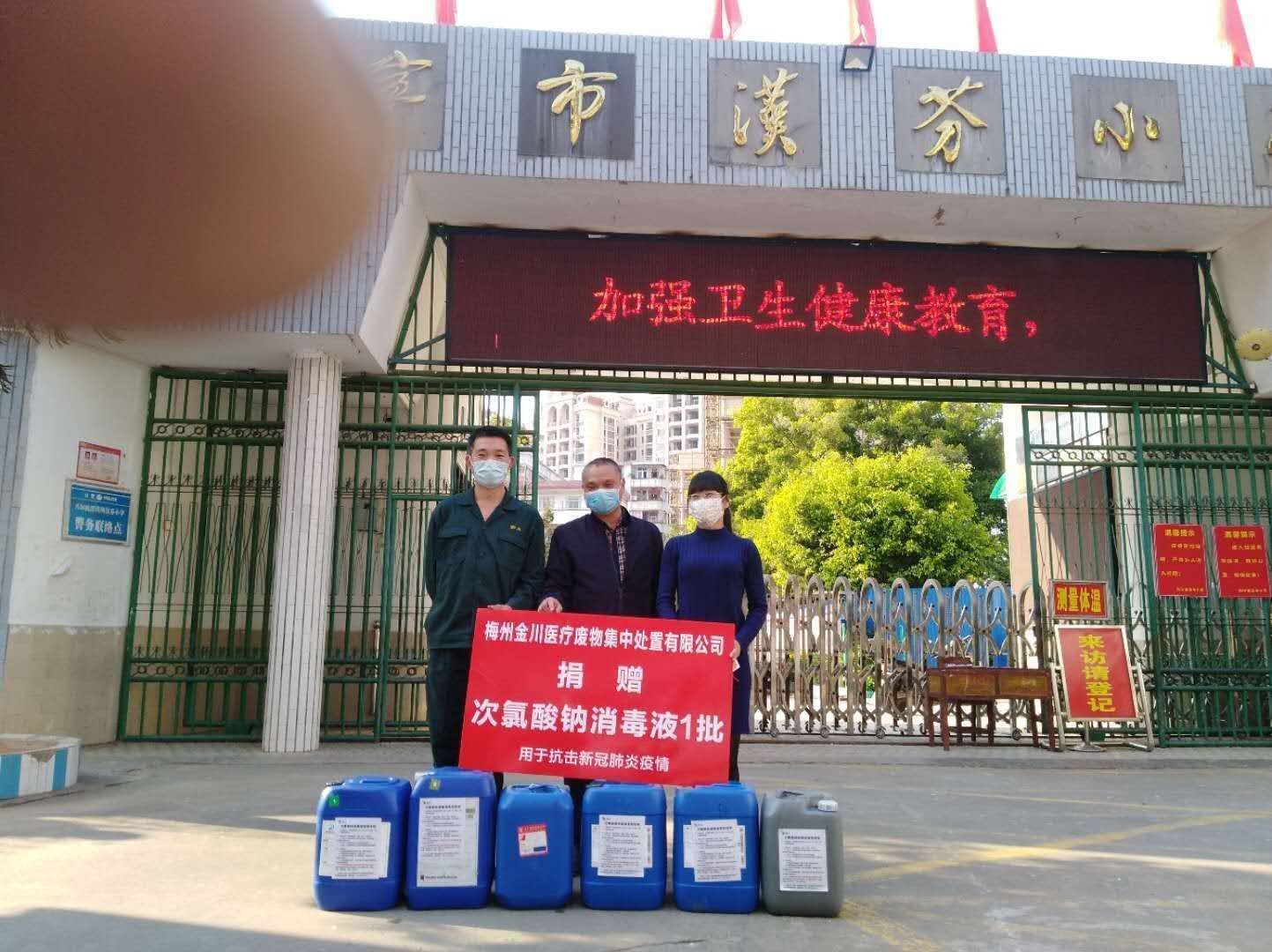 2020年2月22日,一場(chǎng)簡(jiǎn)單而特殊的捐贈(zèng)儀式在興寧市各大中小學(xué)舉行。為切實(shí)幫助學(xué)校復(fù)學(xué)做好防疫物資儲(chǔ)備,金川公司定向捐贈(zèng)給轄區(qū)10所學(xué)校消毒液各一批。