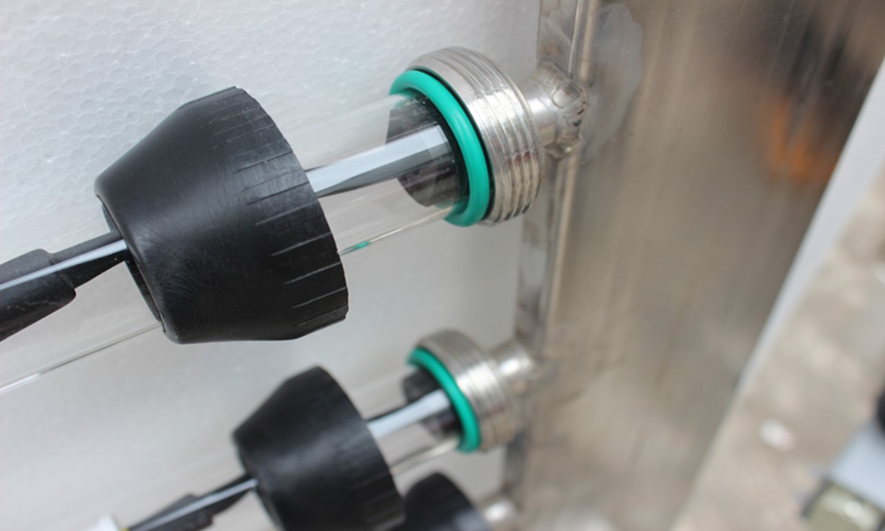 3)紫外燈管連接口處有四重密封設計。采用獨特的固化密封設計,在水壓大于6kg/cm2多次試驗無泄漏現(xiàn)象發(fā)生,密封等級遠大于IP68的級別。